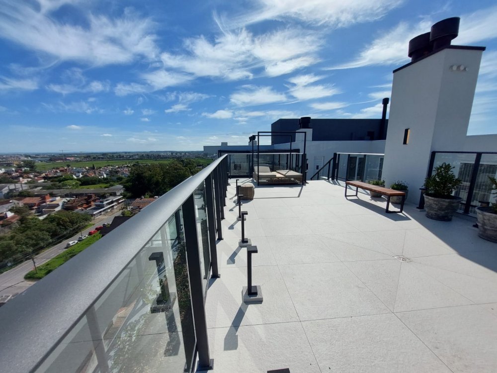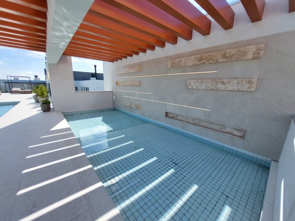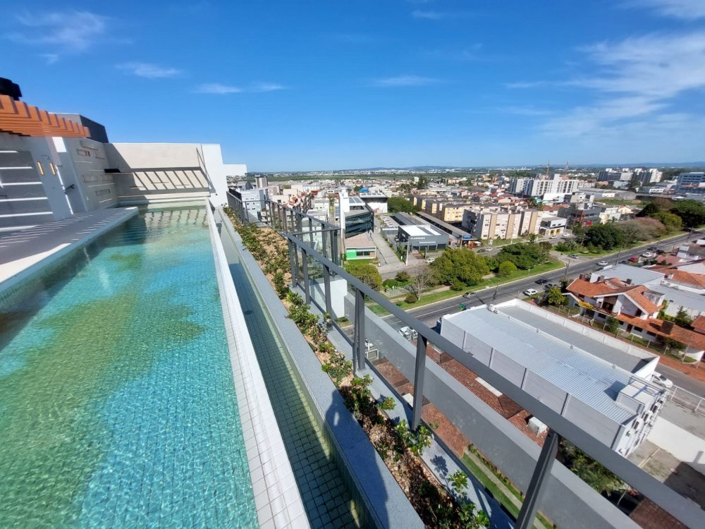 A estrutura de lazer é completa e encantadora, o rooftop com vista de 360º para a cidade de Pelotas, contempla uma ampla piscina com borda infinita, quedas d'água, deck molhado com piscina infantil e solarium.
