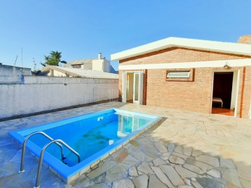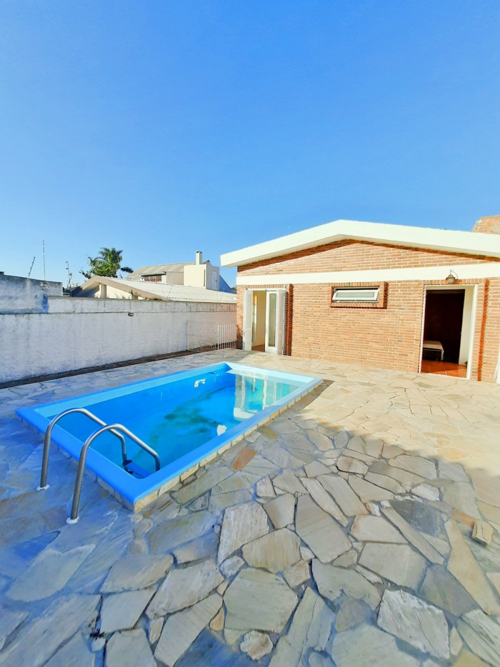 A casa não alaga e não tem umidade, possui duas caixas d'água, piscina, aberturas novas, alpendre, trê quartos com piso flutuante e saída para a pisicina, sendo destes uma suíte com banheira de hidromassagem, dispensa, garagem para até cinco carros e um jardim na parte da frontal da casa.
