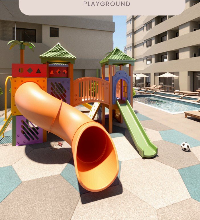 Playground e quadra poliesportiva para lazer ao ar livre