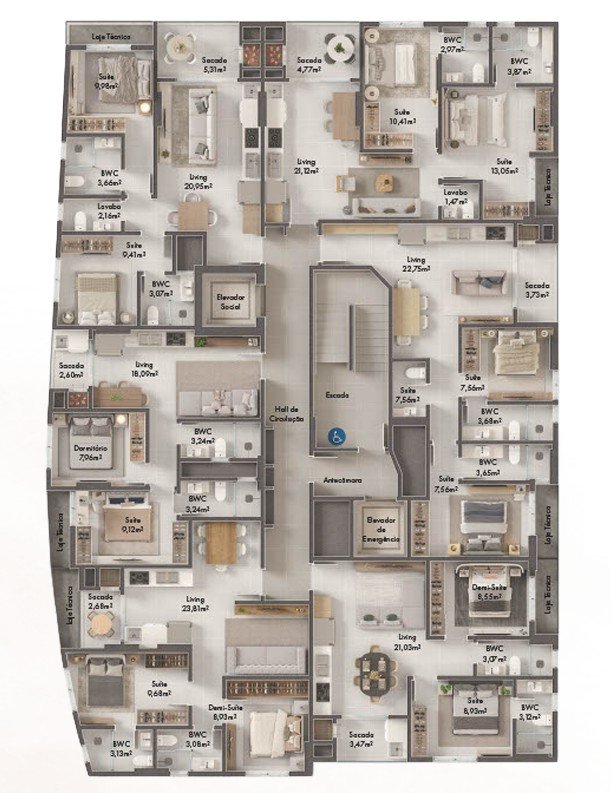 Acabamentos de alto padrão, proporcionando sofisticação e conforto;