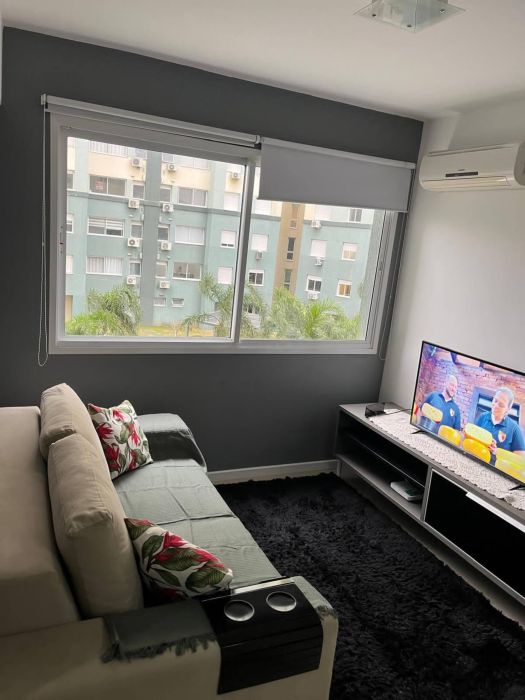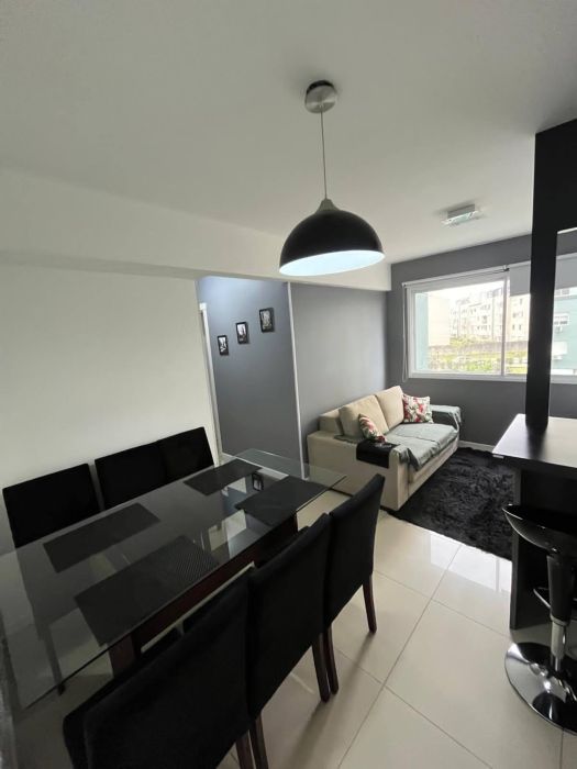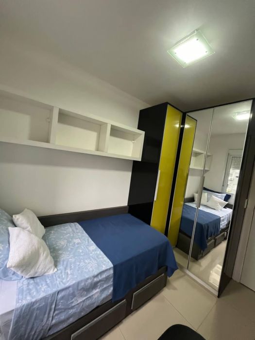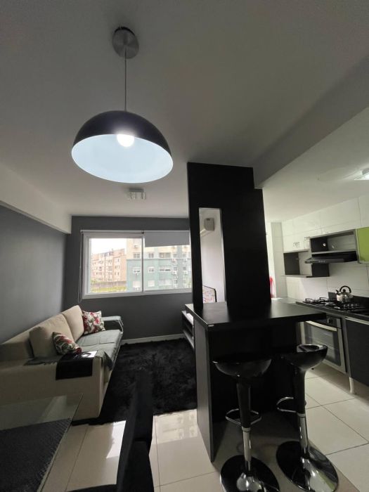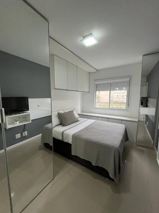 O imóvel, totalmente mobiliado e pronto para ocupação imediata, foi planejado para oferecer o máximo de conforto e funcionalidade. A planta dispõe de dois dormitórios, sendo uma suíte, além de um banheiro social, totalizando dois banheiros com acabamentos de qualidade. A sala de estar apresenta-se como um ambiente acolhedor e iluminado, beneficiado por uma vista panorâmica que valoriza a paisagem local.