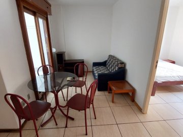 Aluga-se apartamento central, próximo da UCPel e UFPel, todo MOBILIADO, 1 dormitório individual com cama e roupeiro, sala com sofá, rack, mesa com 4 cadeiras, cozinha com méveis, geladeira e fogão. Possui um terraço na saída da sala. Condomínio com portaria 24h e elevador.